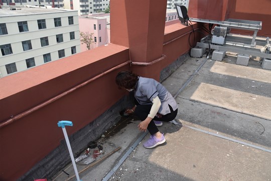 由于雨天泥沙、生活垃圾等雜物極易隨雨水流入雨水篦、排水口導(dǎo)致排水管道堵塞。此次疏通過程中,通過對(duì)所有天臺(tái)排水口、地面雨水篦逐個(gè)清淤,積極消除汛期隱患,確保雨季排水暢通。