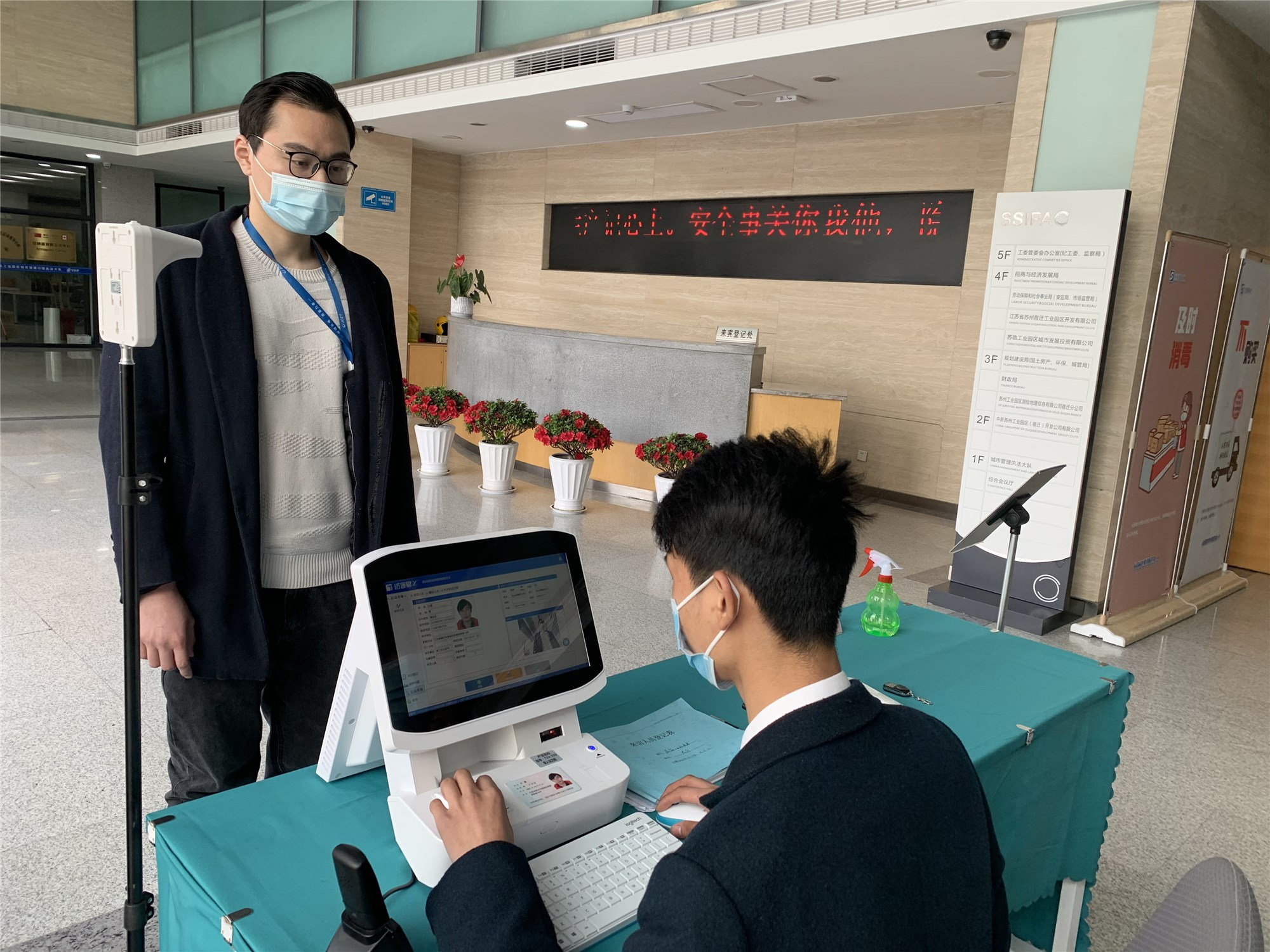 隨著園區(qū)業(yè)務(wù)不斷增加,管委會辦公樓來訪人員進(jìn)出頻繁,身份也比較復(fù)雜。傳統(tǒng)的人工登記接待模式耗時(shí)耗力,也不利于防疫工作開展。為加強(qiáng)管理樓安防管理,建發(fā)公司出資三萬余元在管理樓入口處增加一套智能訪客系統(tǒng),在原有人防基礎(chǔ)上增加技防。