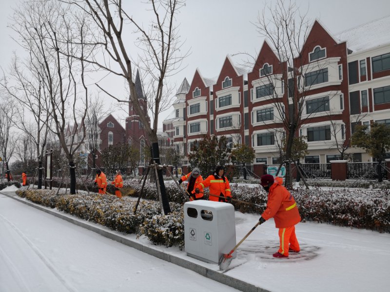 此次掃雪除冰,蘇宿園區(qū)共出動環(huán)衛(wèi)工人近200人,城管隊員4人,其它人員約50人,雪鏟車1輛,平地機(jī)1輛,皮卡車7輛,運(yùn)輸車1輛,融雪劑10噸,人工除雪工具若干。