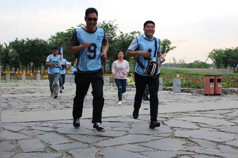 烈日炎炎,隨著“東方不敗、永遠(yuǎn)不敗”和 “屠龍隊(duì)、專治不敗”口號吶喊,兩支斗志昂揚(yáng)的隊(duì)伍踏上三臺山尋寶征途。在指導(dǎo)教官的監(jiān)督下,按照尋寶秘籍的指引,隊(duì)員們?nèi)翰呷毫Γ群笸瓿伞凹w跳躍合拍”、“征集十二個(gè)陌生人合影”、“募集五十元”等寓意深刻的團(tuán)隊(duì)合作任務(wù)。尋寶全程7公里,在到達(dá)終點(diǎn)前路程中,隊(duì)員們體能已經(jīng)達(dá)到極限,但沒有一個(gè)人掉隊(duì),大家相互扶持,沖刺到了終點(diǎn)。