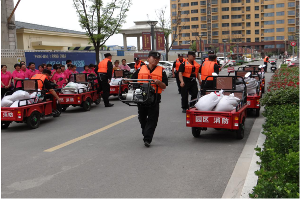 雨季即將來臨,為增強(qiáng)應(yīng)對汛情的反應(yīng)和處置能力,提升公司物業(yè)項(xiàng)目防汛應(yīng)急搶險水平,6月7日下午,公司物業(yè)管理部在園區(qū)公舍西楚金地商城舉行了防汛搶險應(yīng)急演練。演練共出動30名保安、10名消防官兵,8臺應(yīng)急搶險電動三輪車,2臺消防車,準(zhǔn)備了沙袋120袋。
