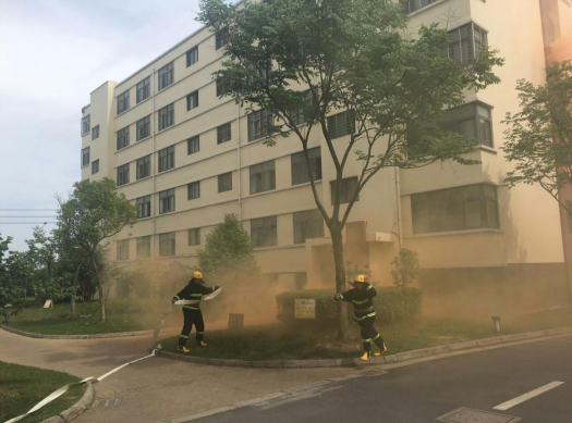 14:20分,園區(qū)公舍2號宿舍樓冒起滾滾濃煙,隨即刺耳的火災(zāi)警報(bào)聲響徹園區(qū),義務(wù)消防戰(zhàn)斗人員接到指示立即啟動消防三輪車奔赴火災(zāi)現(xiàn)場。不到一分鐘時(shí)間,一至六層的租戶在疏散人員的帶領(lǐng)下掩住口鼻,彎著腰,有序地從宿舍的消防安全通道逃生。隨即,消防戰(zhàn)斗人員按照指示迅速開啟消防水泵對“起火”后的宿舍樓進(jìn)行快速滅火,救護(hù)人員隨即趕到現(xiàn)場參加救護(hù),演練持續(xù)近五分鐘后圓滿完成。